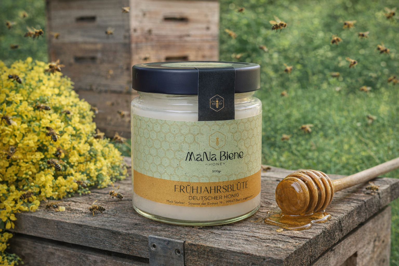 Genieße den Geschmack des Frühlings mit unserem MaNa.Biene Frühjahrsblüte Honig – direkt aus der regionalen Imkerei in Bad Langensalza. Dieser cremige, naturbelassene Honig stammt aus den ersten Blüten des Jahres und überzeugt durch sein feines, blumiges Aroma. Sorgfältig geerntet und schonend verarbeitet von Maik Stelzer, steht MaNa.Biene für Qualität, Nachhaltigkeit und echte Handarbeit.